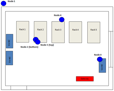 The server room represents an interesting testbed for distributed monitoring of environmental parameters, in particular due to the large range of spatial-variability.