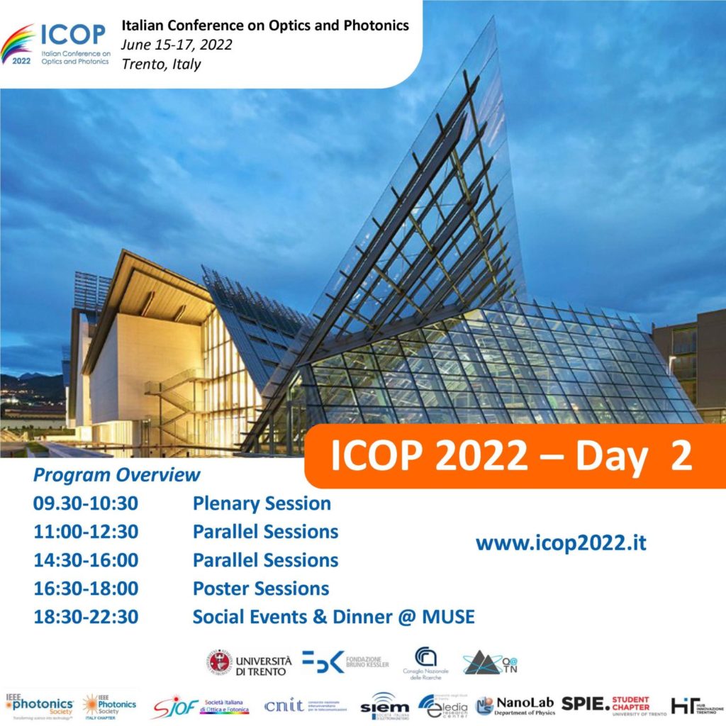 The second day of the exciting 2022 Italian Conference on Optics and Photonics (ICOP 2022) is cominig up.
