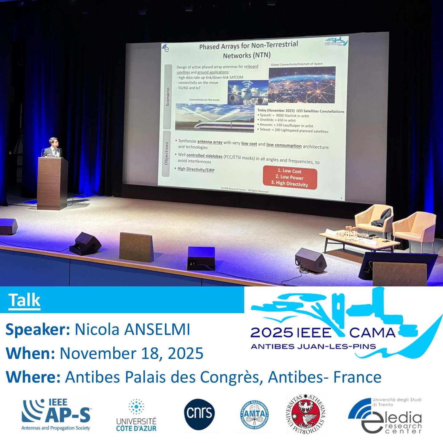 Today, our colleague Marco SALUCCI (ELEDIA@UniTN – DICAM) delivered a talk at the 26th edition of the International Conference on Electromagnetics in Advanced... Read More