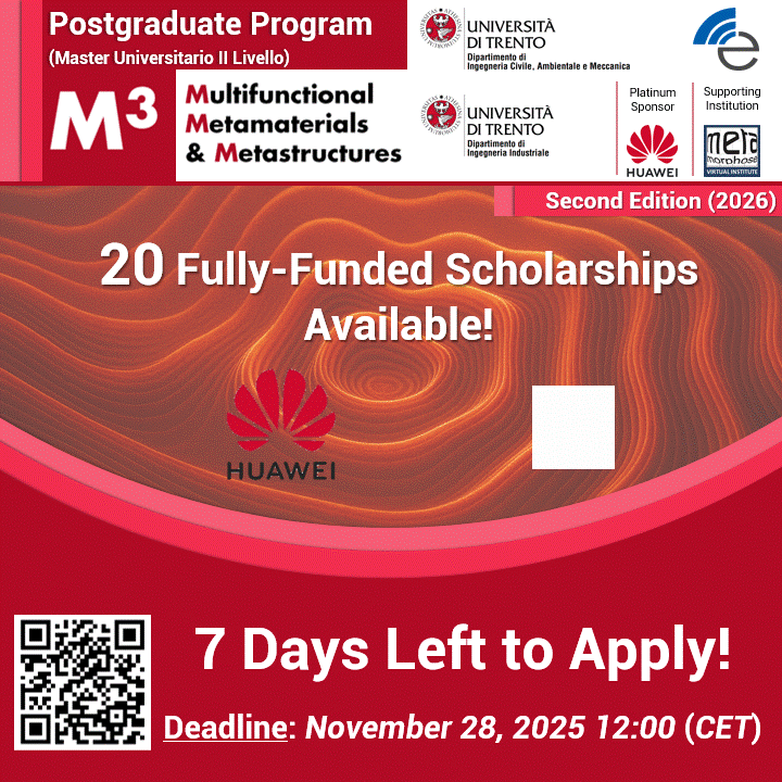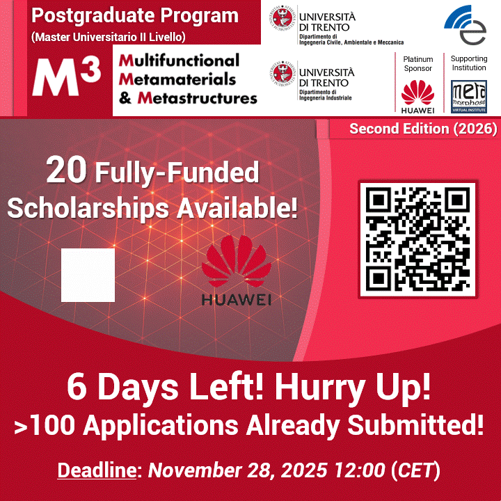 We are glad to share that Prof. Giacomo OLIVERI (ELEDIA@UniTN – DICAM) presented the talk: “Postgraduate Education for Next‐Generation Metamaterial Scientists... Read More