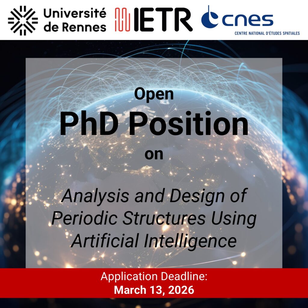 The ELEDIA Research Center is pleased to promote a new open PhD position based at the University of Rennes, hosted within the IETR – Institut d’Électronique et des Technologies du Numérique, and carried out in collaboration with CNES.